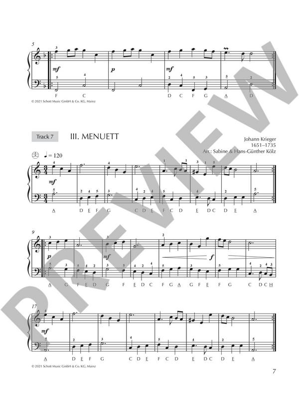 Die schönsten Vorspielstücke für Akkordeon von Bach bis Piazzolla Kölz, Sabine, ed Kölz, Hans-Günther, ed Tolle und berührende Musik erhöht die Freude und Motivation am Instrument, und davon bietet Der Konzertband reichlich. Der musikalische Vortrag ob in der Musikschule, privat oder bei öffentlichen Veranstaltungen, wird abwechslungsreich und unterhaltsam. Stilistisch reicht die gelungene Auswahl von Barock über Oper und Tango bis Jazz, da ist garantiert für jede*n etwas dabei. Als akustische Lernhilfe wurden alle Stücke mit Akkordeon eingespielt. Für Abwechslung sorgen die Playbacks, die zu einigen Stücken aufgenommen wurden. Alle Audio-Dateien können mit einem Code, der im Heft abgedruckt ist, heruntergeladen werden. Vier kleine Stücke (D. G. Türk) Kleine Barock-Suite Menuett (W. A. Mozart) La donna è mobile (G. Verdi) Chaconne G-Dur (G. F. Händel) Drei kleine Stücke (A. Diabelli) Zwei Deutsche Tänze (L. v. Beethoven) Soldatenmarsch (R. Schumann) Rainy Day / Regentag (J. Moser) Thema mit Variation (C. Gurlitt) Valse mélancolique (R. Mohrs) Shpil Klezmer (Traditional) Prelude for the Bellows (H. G. Kölz) Irish Folk Suite (Traditional) Spaziergang (A. Gretchaninoff) Valse joyeuse (R. Mohrs) Sonatina in modo di Jazz (H. G. Kölz) Dorogoi dlinnoyu (B. I. Fomin) Gankino oro (Traditional) Lied und Variation über Jetzt gang i ans Brünnele Land of Hope and Glory (E. Elgar) Gymnopédie Nr.1 (E. Satie) Latin Grooves (H. G. Kölz) An der schönen blauen Donau (J. Strauß) La noche del tango (H. G. Kölz) Air (J. S. Bach) Jazz-Suite aus Jazzprogression (H. G. Kölz) Tico-Tico no Fubá (J. G. de Abreu) Alla turca (W. A. Mozart) Oblivion (A. Piazzolla)
