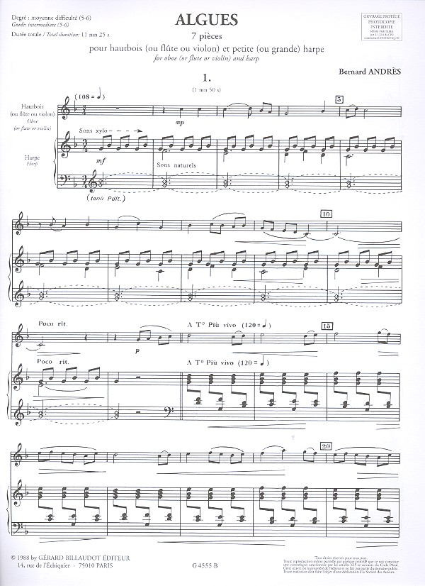 | Untertitel: | pour hautbois (fl, vl) et petite ou grande harpe |