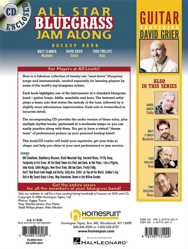 Guitar featuring David Grier Backups, Lead Parts and Note-for-Note Transcriptions Bill Cheatham Blackberry Bossom Black Mountain Rag Farewell Blues I'll fly away Footprints in the Snow All the good Times are past and gone In the pines I am a Pilgrim John Hardy Little Maggie New River Train Old Joe Clark Pretty Polly Don't that Road look rough and rocky Sally Ann Sittin' on Top of the World Soldier's Joy Roll in my sweet Baby's Arms Way downtown Down in the Willow Garden