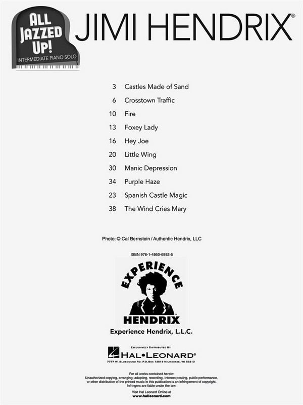 10 Favorites arranged in a Jazz Style Castles made of Sand Crosstown Traffic Fire Foxey Lady Hey Joe Little Wing Manic Depression Purple Haze Spanish Castle Magic The Wind cries Mary