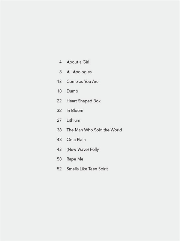 About A Girl All Apologies Come As You Are Dumb Heart Shaped Box In Bloom Lithium The Man Who Sold The World On A Plain (New Wave) Polly Rape Me Smells Like Teen Spirit