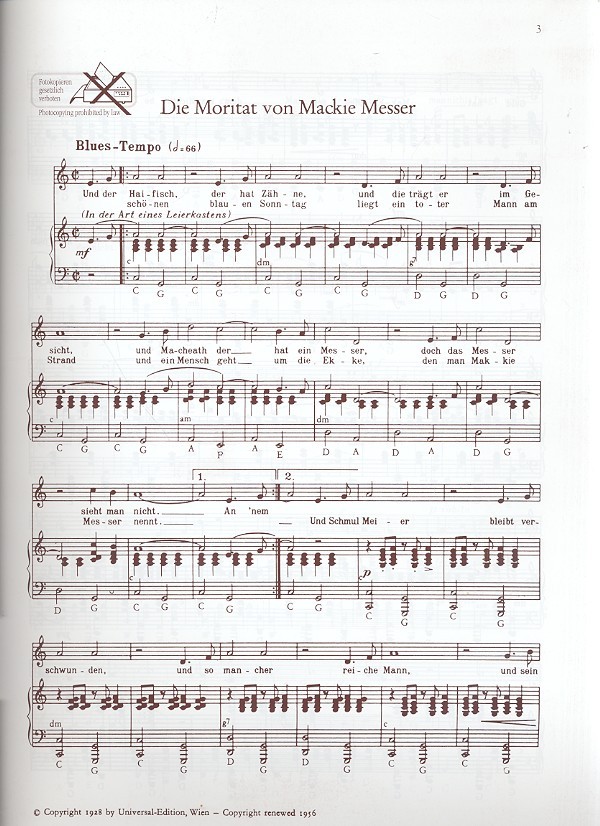 | Untertitel: | Die Dreigroschenoper für Gesang und Klavier |