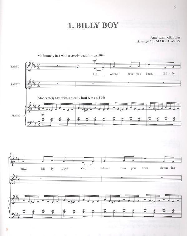 Beck, Andy, ed 10 american Folk Songs for Recitals, Concerts and Contests Billy Boy Down in the Valley to pray Every Night when the Sun goes in Go 'way from my Window How can I keep from Singing Poor Boy Simple Gifts Sourwood Mountain Sun don't set in the Mornin' The Water is wide