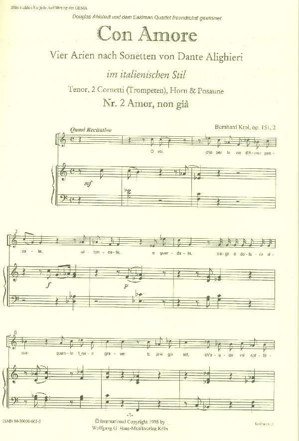 | Untertitel: | für Tenor, 2 Kornette, Horn und Posaune Stimmen |