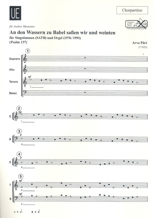 | Untertitel: | sassen wir und weinten für gem Chor, Chorpartitur |