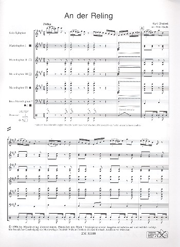 sadlo, peter, bearb. In der Reihe Ragtime für Percussion erscheinen Bearbeitungen virtuoser Solo-Xylophon-Stücke mit Percussion-Ensemble im Arrangement von Peter Sadlo. An der Reling war ursprünglich für Akkordeon, wurde jedoch von Drabek selbst für Xylophon bearbeitet. Diese Solostimme ist in Sadlos Einrichtung unverändert übernommen worden.