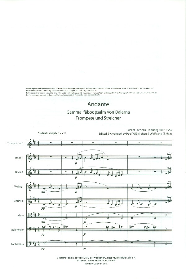 | Untertitel: | für Trompete, 2 Oboen, 2 Violinen, Viola, Violoncello und Bass Partitur und Stimmen |