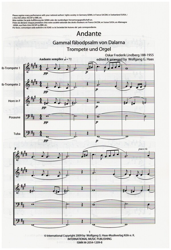 | Untertitel: | für 2 Trompeten, Horn, Posaune und Tuba Partitur und Stimmen |