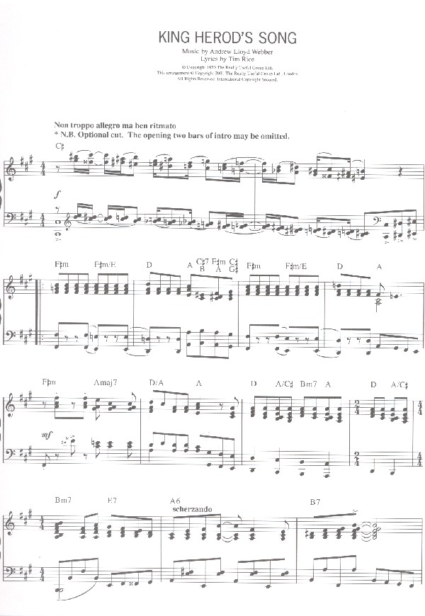 Jesus Christ Superstar : King Herod's Song Evita : Another Suitcase in another Hall You must love me Cats : Skimbleshanks : The Railway Cat Starlight Express : Starlight Express The Phanton of the Opera : Masquerade Aspects of Love : I am a Mermaid Sunset Boulevard : With one Look Whistle down the Wind : Whistle down the Wind The beautiful Game : Our Kind of Love