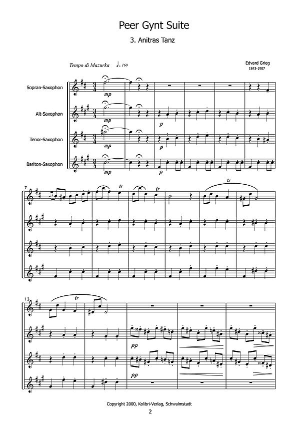 Produktinformationen "Anitras Tanz für 4 Saxophone (SATB)"