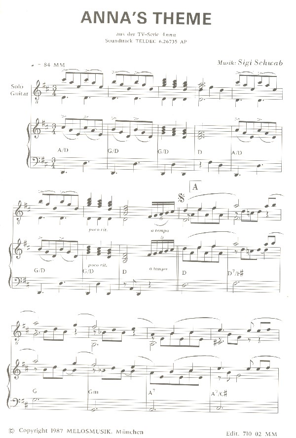 Produktinformationen "Anna's Theme: piano/solo guitar"