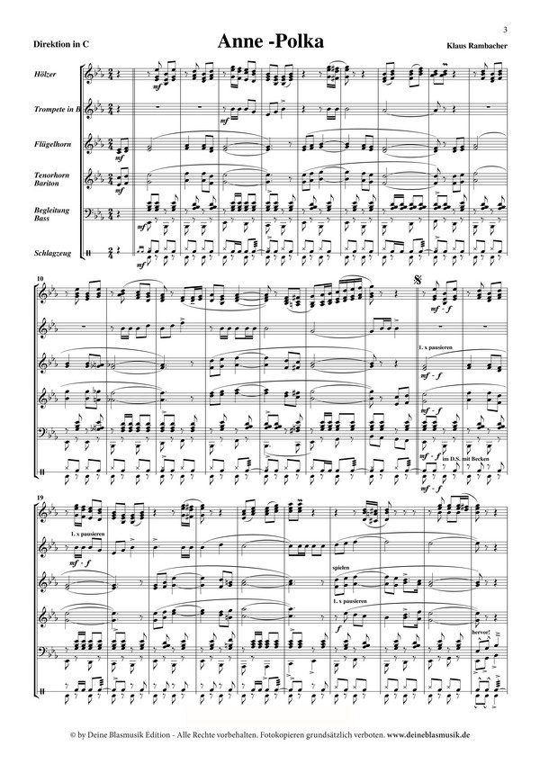 Der fränkische Komponist und Arrangeur Klaus Rambacher widmete sein Erstlingswerk aus dem Jahr 2000 seiner jüngsten Tochter Anne. Die vorliegende Neubearbeitung stammt aus dem Jahr 2022. Die für die Musikanten leicht spielbare Polka lässt alle Register glänzen.