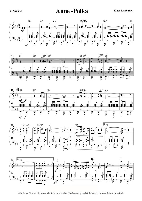 Der fränkische Komponist und Arrangeur Klaus Rambacher widmete sein Erstlingswerk aus dem Jahr 2000 seiner jüngsten Tochter Anne. Die vorliegende Neubearbeitung stammt aus dem Jahr 2022. Die für die Musikanten leicht spielbare Polka lässt alle Register glänzen.
