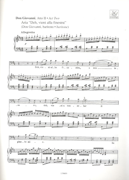 Cantolopera Deh vieni alla finestra (Don Giovanni) Madamina Il catalogo è questo (Don Giovanni) Fin ch'han dal vino (Don Giovanni) Non più andrai farfallone amoroso (Le nozze di Figaro) Se vuol ballare signor conti (Le nozze di Figaro) Aprite un po' quegli occhi (Le nozze di Figaro) In diesen heil'gen Hallen (Die Zauberflöte)