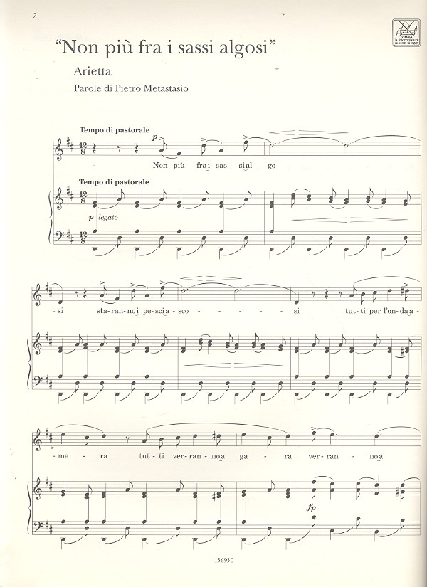 Paperi, Valeri, ed Non più fra i sassi algosi Ah che nel dirti addion La prece dell'orfana La stella Il desiato ritorno La primavera Il pastore svizzero La zingarella spagnuola