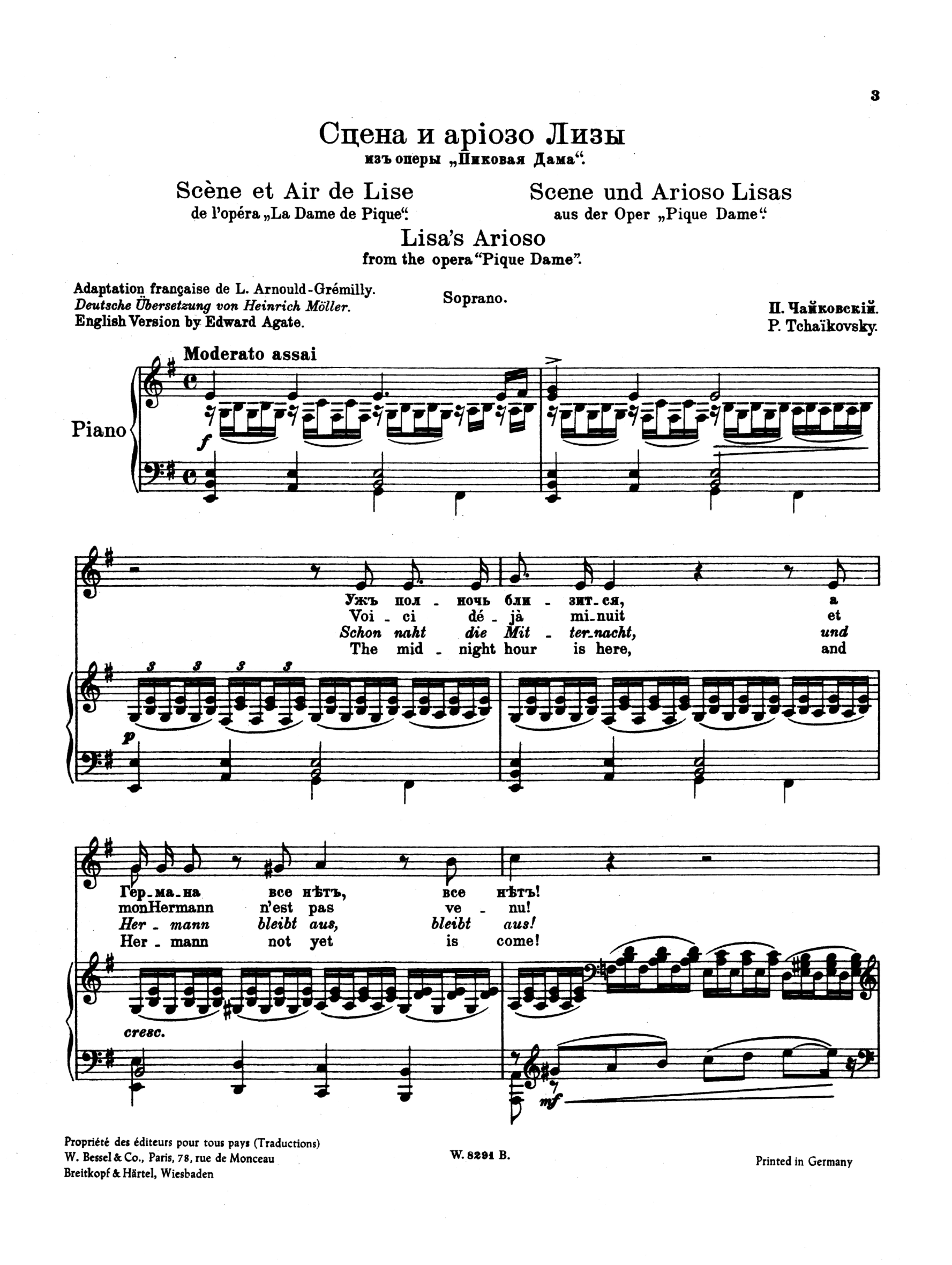 Pique Dame Scene und Arioso Schon naht die Mitternacht
