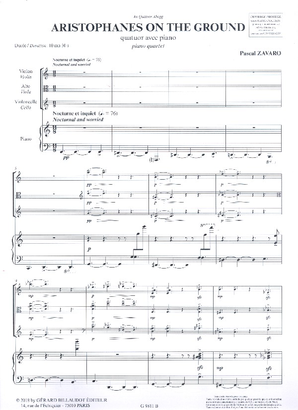 | Untertitel: | pour violon, alto, violoncelle et piano parties |