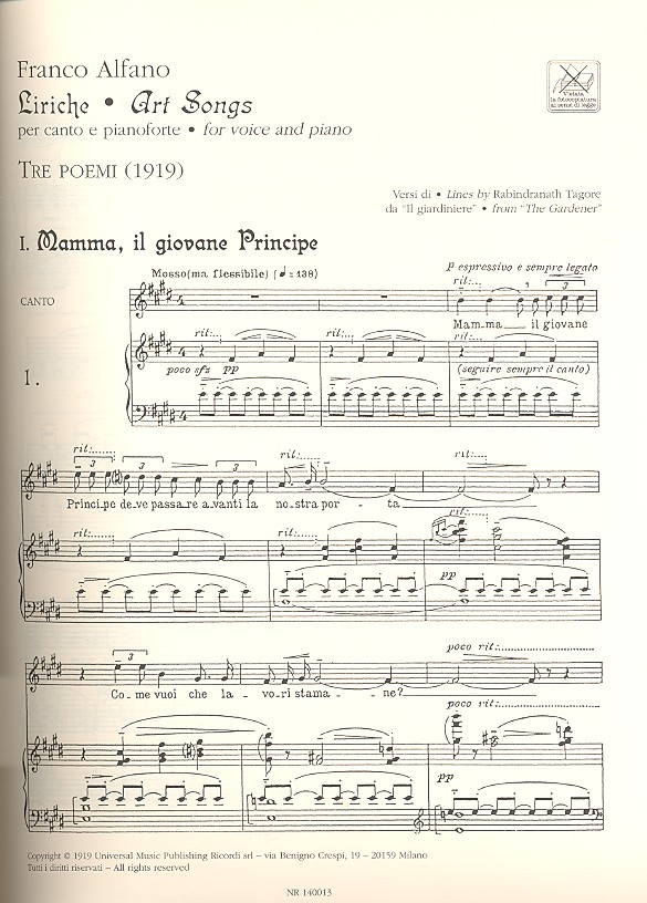 Mamma il giovane principe Egli mormorò Amor mio alza i tuoi occhi Parlami amor mio Perché siedi là Non nascondere il secreto Corro come il cervo muschiato Felicità Messaggio Antica ninna-nanna partenopea Lungo la via del mare I miei piedi son stanchi Scrivimi amor mio Sì lo so Cogli prendi questo fiorellino Tu sei il cielo Colsi il tuo fiore o mondo Il mio cuore uccel del deserto