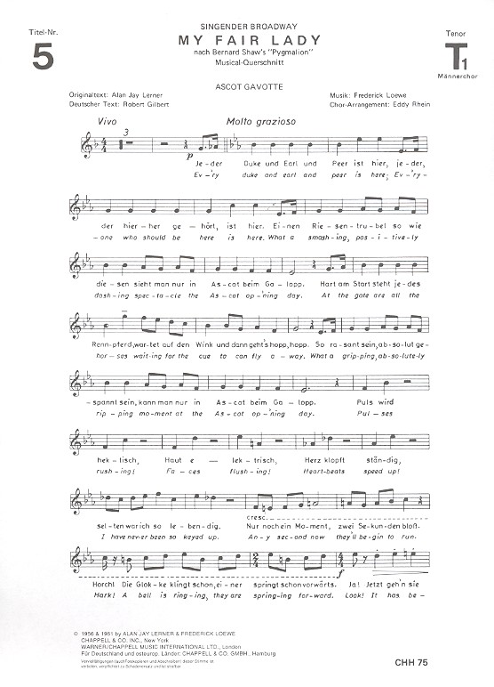 Singender Broadway Lerner, Alan Jay, Text Gilbert, Robert, deutscher Text Pygmalion
