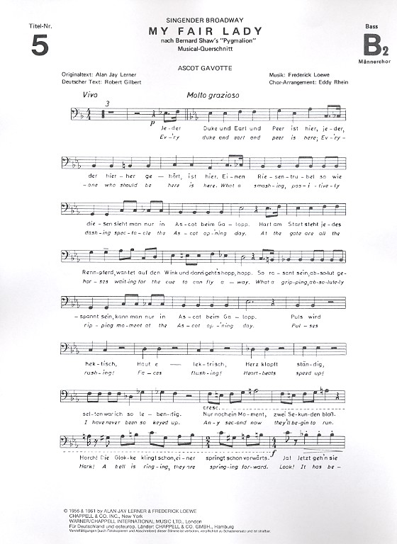 Singender Broadway Lerner, Alan Jay, Text Gilbert, Robert, deutscher Text Pygmalion