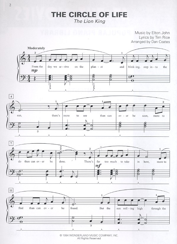 Coates, Dan, arr. Popular Piano Library Late elementary to early intermediate Believe The Circle of Life Corpse Bride Double Trouble The Imperial March In Dreams James Bond Theme Over the Rainbow Theme from Superman Under the Sea Wonka's Welcome Song Yo Ho (A Pirate's Life for me)