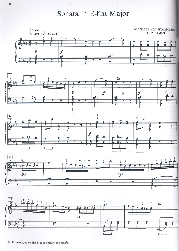 Werke von Auenbrugger, Marianna von Backer-Grondahl, Agathe Beach, Amy Marcy Carreno, Teresa Chaminade, Cecile Farrenc, Louise De Gambarini, Elisabetta Hensel, Fanny Landowska, Wanda Martinez, Marianne von Wieck Schumann, Clara Shepherd, Adaline Szymanowska, Maria