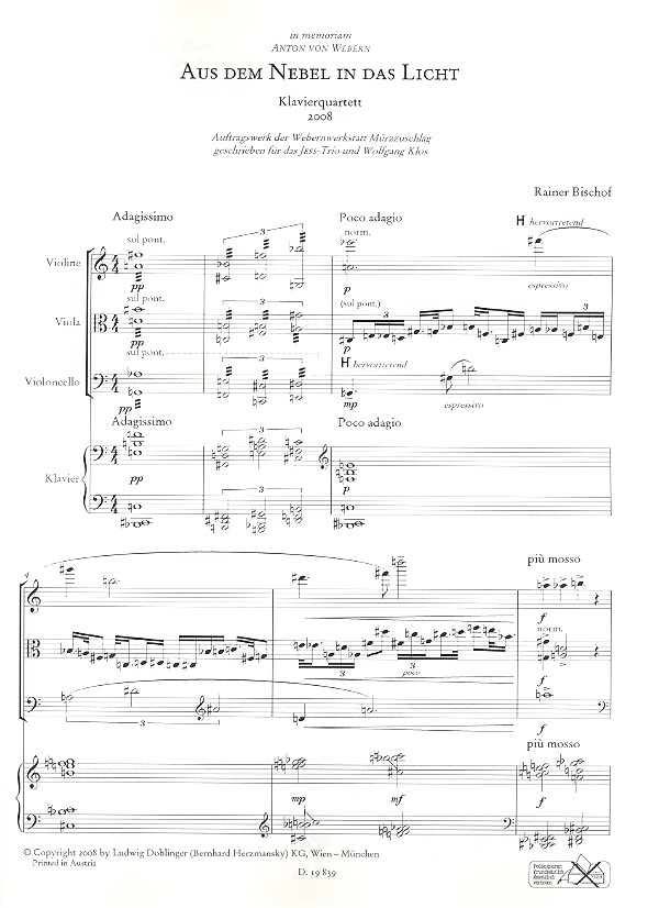| Untertitel: | Violine, Viola, Violoncello und Klavier Stimmen |