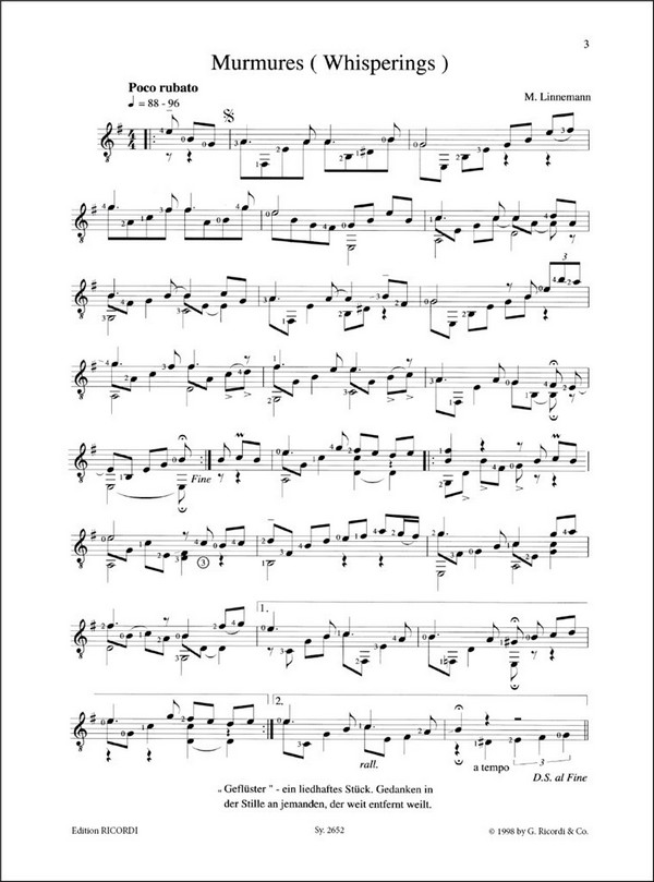 Murmures (Whisperings) Ballade pour Christine et Richard Three Tears Henry dog extraordinary Your Name in the Stars thoor Ballylee Bossa Nova Lisa All at Sevens and Eights Our Time Aus dem Schweigen