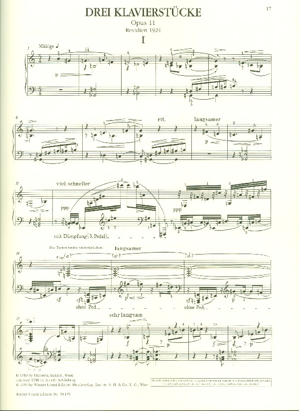 3 klavierstuecke Op.11 6 kleine klavierstuecke Op.19 Suite fuer klavier Op.25 Klavierstueck Op.33a Op.33b 3 klavierstuecke ( 1894 ) Brinkmann, reinhold, ed Roggenkamp, peter, ed