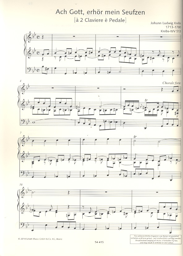 Friedrich, Felix, ed Ach Gott erhör mein Seufzen (KrebsWV513) Ach Herr mich armen Sünder (KrebsWV514) Freu dich sehr o meine Seele (KrebsWV520) Freu dich sehr o meine Seele (Variante) (KrebsWV520a) Herr Gott dich loven alle wir (KrebsWV521) Herr ich habe mißgehandel (KrebsWV523) Fantasia sopra Herr Jesu Christ dich zu uns wend (KrebsWV524) Herr Jesu Christ du höchstes Gut (KrebsWV525) Herzlich lieb hab ich dich o Herr (KrebsWV526) Herzlich lieb hab ich dich o Herr (KrebsWV527) Ich ruf zu dir Herr Jesu Christ (KrebsWV529) Ich ruf zu dir Herr Jesu Christ (Variante) (KrebsWV529a) Jesu der du meine Seele (KrebsWV531) Fantasia sopra Jesus meine Zuversicht (KrebsWV525) Trio sopra Chorale Mein Gott das Herze bring ich dir (KrebsWV538) Trio sopra Chorale Mein Gott das Herze bring ich dir (Variante) (KrebsWV538a) Nun freut euch liebe Christen gmein (KrebsWV541) O Ewigkeit du Donnerwort (KrebsWV542) O König dessen Majestät (KrebsWV544) Vom Himmel hoch da komm ich her (KrebsWV545) Warum betrübst du dich mein Herz (KrebsWV547) Warum sollt ich mich denn grämen (KrebsWV548) Fantasia sopra Warum sollt ich mich denn grämen (Variante) (KrebsWV548a) Was Gott tut das ist wohlgetan (KrebsWV549) Fantasia sopra Wer nur den lieben Gott läßt walten (KrebsWV551) Wo soll ich fliehen hin (KrebsWV555) Zeuch ein zu deinen Toren (KrebsWV556)