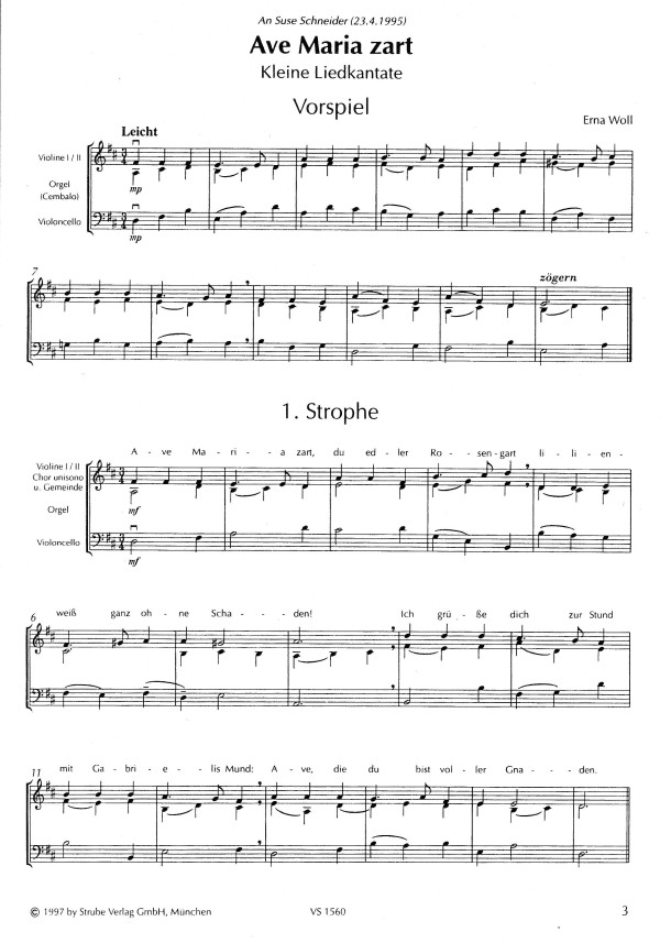 | Untertitel: | für 1-3stg. Chor (gleich oder gem.), 2 Violinen und Violoncello (Orgel, 2 Flöten, Gemeinde ad lib.) Partitur |