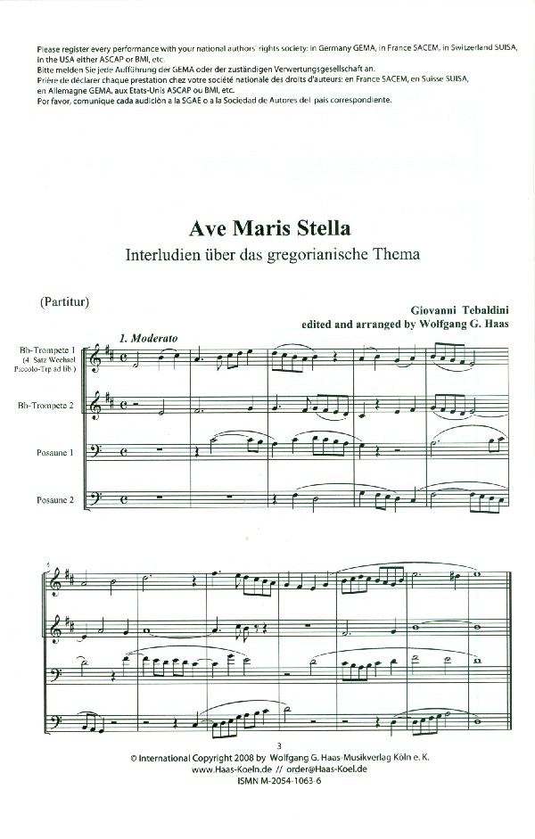 Produktinformationen "Ave maris stella für 2 Trompeten und"