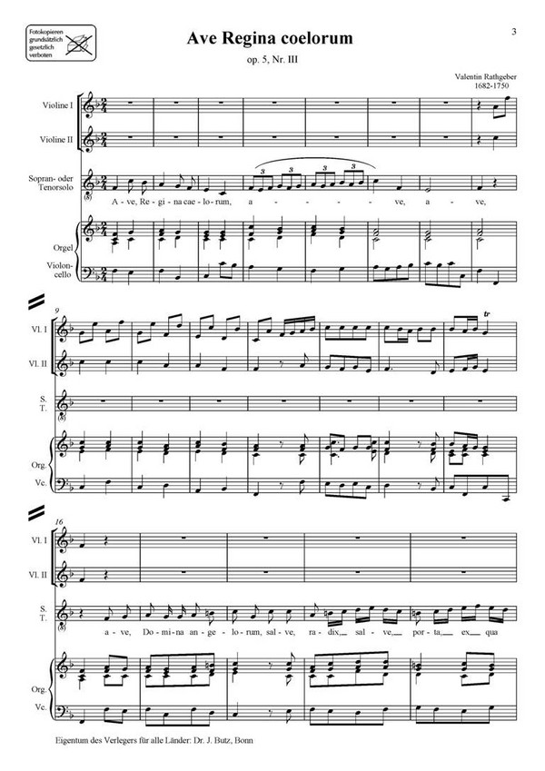 | Untertitel: | für Sopran (T), 2 Vl, Vc und Orgel Stimmen |