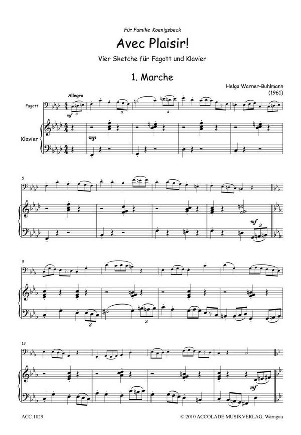 Avec plaisir für Fagott und Klavier