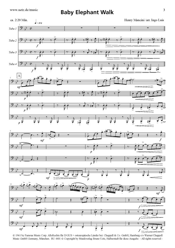 | Untertitel: | für 4 Tuben (Posaunen, Baritone, Tenorhörner) Partitur und 10 (Alternativ-)Stimmen |