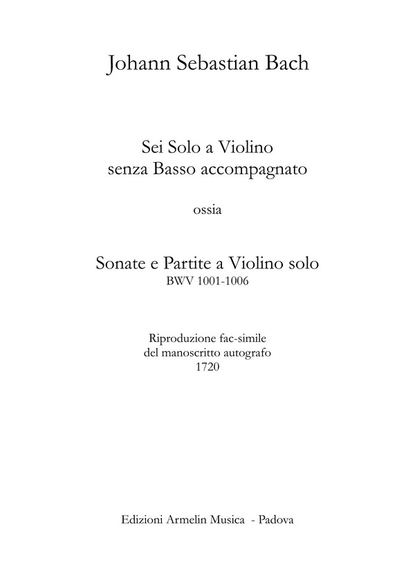 | Untertitel: | Sei Solo a Violino senza Basso accompagnato . Sonate e Partite BWV 100 |