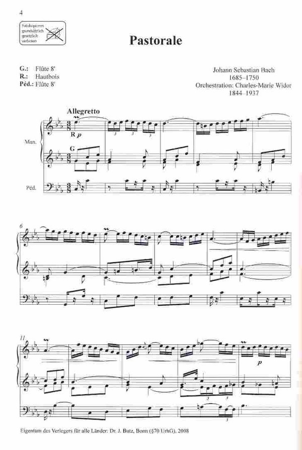 6 Stücke für Orgel Bach Pastorale Miserere mei Domine Aria Marche du veilleur de nuit Sicilienne Mattheus-Final Bach
