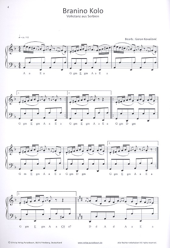 Die authentische Balkanreihe Kovacevic, Goran, arr. Lieder und Tänze aus Südosteuropa Branino Kolo Na srce mi ezi Da zna zora Mori sokol pije Kolubarski vez Igra sa Juga Ide Jovo od oranje Trojanac Kad ja podjoh Becarac Igra sa Juga 2