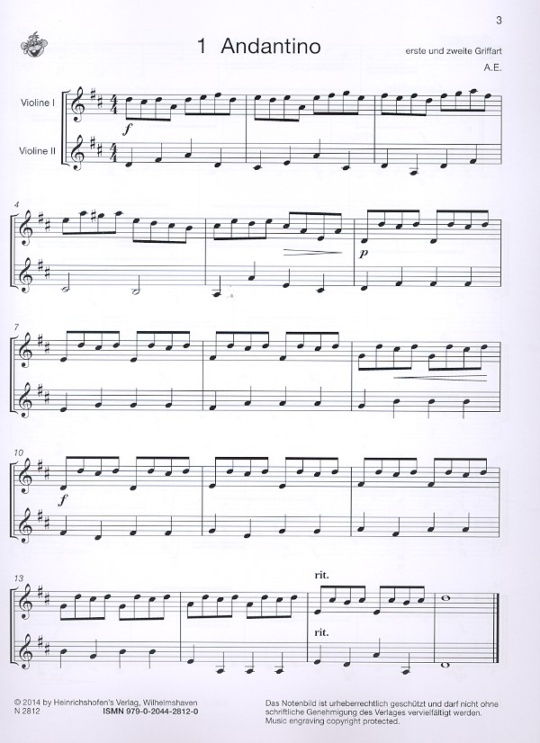 | Untertitel: | für 2 Violinen Spielpartitur |