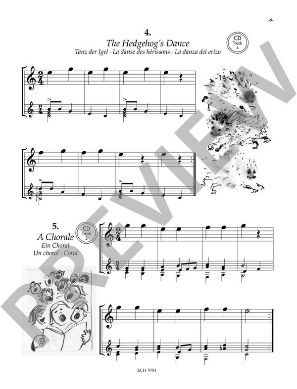 A Bed Time Story Wake up A Mountain Brook The Hedgehog's Dance A Chorale The Fisherman's Tale A Rhythm Exercise The Parade Trumpets The Chicken A Rhyme A Ring Game Picking Flowers The little Music Box The Cuckoo The 3rd String The Hunter's Call Clouds A folk Song Going on a Picnic A Children's Song A Spring Waltz A Lullaby A Lament Variations on the Theme the Elk escapes A sad Song The Hunter's Return The Thumb Papa Bear The Rain Drops The Morning The Hedgehog's Dance The Vlocks Dance of the Forest Elves A Holk Dance An old Tale A little March Twilight An old Folk Dance The Forest Nymph Alala galician Folk Song The Rag Doll The Flautist A Dance Lullaby A Song Game Little Melody In the Meadow A Troubadour's Song Ring around Little Dance The Butterfly A Court Dance The Bell Ringer Spring Arpeggio The little Gypsy The old Pony The blue Anemone Study The Cuckoo The white Sail Dreaming The Chords Whistling Aquarium The Tag Game The Gedgehog's Dance The Elephant's March The happy Vagabond The Toy A March A spanish Renaissance Folk Song The Shepherd's Flute The Bells A sunny day Back to school Left hand Upstairs downstairs