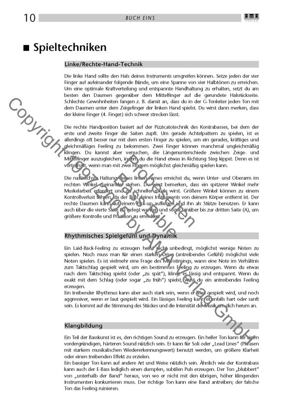 Die Hauptaufgabe des Bassgitarristen ist es, die musikalische Basis für die Rhythmusgruppe zu liefern und die Band mit interessanten Grooves vor allem zusammen mit dem Schlagzeug anzutreiben. Um die Aufmerksamkeit des Publikums aufrechtzuerhalten, sollten die gespielten Linien oft variiert werden. Folglich ist es egal, ob es sich um Walking Bass, Riffs, Improvisationen oder sogar ein einfaches Pattern handelt, die eigentliche Funktion des Bassgitarristen ist es, mehr oder weniger wiederkehrende Phrasen solide und mit einem guten Timing zu spielen. Ein Instrument zu lernen, kann wie das Erlernen einer Sprache sein. Der erste Schritt ist meistens, sich mit dem Klang von kurzen Phrasen vertraut zu machen. Der nächste Schritt ist, diese Vokabeln so exakt wie möglich zu übernehmen. Je mehr Phrasen du lernst, um so größer, anspruchsvoller und eigenständiger wird dein musikalischer Wortschatz. Die Fähigkeit, Noten zu lesen, kommt meist erst später. Sich zu früh und zu intensiv mit zu viel Theorie zu beschäftigen, kann die Begeisterung schmälern. Dieses Buch ist wie ein Wörterbuch für musikalische Phrasen aufgebaut, in dem du das nachschlagen kannst, was dich gerade interessiert. Deswegen habe ich bei der Zusammenstellung dieses Buches nach der Devise gearbeitet, dass, wenn du eine ganze Reihe von musikalischen Phrasen, Riffs, Rhythmen, Patterns usw. lernst, sie als Grundlage für z. B. die Bandarbeit dienen können. Ich habe überflüssige, langwierige und selten gespielte Übungen bewusst ausgelassen, weil das Üben für dich unterhaltsam sein soll und du somit eher lernst, auch dein eigenes Publikum zu unterhalten. Es gibt interessante und praktische Linien, die Spaß machen, somit deine Aufmerksamkeit wach halten und nützlich für eine gute, solide und flüssige Spieltechnik sind. Sobald du eine ganze Reihe von Phrasen einer bestimmten Stilrichtung verinnerlicht hast, werden dir automatisch Alternativen einfallen. Und jetzt fängt deine Musik erst richtig an, spannend zu werden. Erst nachdem du viele kreative Möglichkeiten kennen gelernt hast, kannst du deine eigenen, guten, originellen und überzeugenden Ideen verwirklichen. Überzeugendes Improvisieren entwickelt sich aus dem Erlernen ausreichender Grundphrasen. Ich habe versucht, in jedem Abschnitt das Wesentliche der jeweiligen Stilrichtung einzufangen ohne den Anspruch auf Vollständigkeit oder Absolutheit. Diese Beispiele sind rein als Sprungbrett gedacht, von dem aus du starten kannst. Ich habe oft die Ideen mit einfließen lassen, die mich selbst fasziniert haben. Sie können einfach oder komplex sein, aber sie erfüllen alle ihren Zweck, und jede für sich bildet die Grundlage für die Entwicklung einer ganzen Reihe neuer, eigener Ideen. Dieses Buch kann auf unterschiedliche Weise benutzt werden. Wenn du z. B. an der Slap-Technik interessiert bist, schlage das entsprechende Kapitel auf und du findest sowohl einfache Phrasen für Anfänger als auch ein paar ziemlich knifflige. Du wirst auch merken, dass viele Slap-Linien auf alten Boogie Lines basieren, die im Kapitel davor behandelt werden. Wenn du dich mit Walking Bass auseinander setzt, wirst du dir verwandte Tonleitern und Arpeggien näher anschauen. So kannst du deine eigenen Interessen erforschen und deinen Horizont erweitern. Viele Bassisten spielen nach Gehör und nicht vom Blatt, was auch ein Grund dafür war, die CDs aufzunehmen, die zu diesem Buch gehören. Trotzdem empfehle ich Nichtlesern, die jeweiligen Phrasen während des Hörens auch zu lesen, da dies allmählich dazu führt, die Abschnitte auf dem Blatt wieder zu erkennen. Lesen bedeutet, bestimmte Muster zu erfassen. Wir lesen z. B. nicht die einzelnen Buchstaben eines Wortes, sondern eine Buchstabengruppe als Ganzes. Es ist sehr nützlich, etwas aufschreiben zu können, wenn du eigene Ideen sammeln willst. Wenn du Noten lesen lernst, hast du Zugang zu einer ganz neuen Musikwelt, zu Informationen und Erfahrungen, woran der Nichtleser nicht teilhaben kann. Letzten Endes hängt alles davon ab, mit wie viel Begeisterung und Einsatz du an die Sache gehst. Zum Schluss möchte ich noch sagen, dass ich zunächst überhaupt nicht vorhatte, ein Buch zu schreiben. Es entwickelte sich als Hilfe für meine Schüler, die nicht genügend Ideen und Möglichkeiten hatten, sich musikalisch auszudrücken. Jeder Schüler hatte seinen eigenen Problembereich, und erst nachdem ich einen ganzen Stapel Musiknotizen gesammelt hatte, wurde mir klar, dass ich eigentlich ein System entwickelt hatte, das auch anderen nützlich sein könnte. Mein Ziel war es deshalb, jeden Schüler mit dieser musikalischen Ausrüstung auszustatten gewappnet mit einem großen Vokabular von Phrasen. Somit kannst du auf alle Eventualitäten vorbereitet sein. Dein musikalischer Wortschatz wird groß genug sein, um dich in der Sprache der Musik besser auszudrücken. P.S. Die Herausgeber haben sich an der international gebräuchlichen englischen Schreibweise orientiert. Die deutsche Tonbezeichnung h ist in diesem Fall b und b ist bb. Man kann den Briten Paul Westwood als einen der gefragtesten Bassisten bezeichnen. Seine jahrzehntelangen internationalen Arbeiten und Erfahrungen mit Tom Jones, Al Jarreau, Janet Jackson, Shirley Bassey, Madonna, Joe Cocker, Gloria Estefan, dem Royal Philharmonic und dem London Symphony Orchestra, Produzenten wie Lieber & Stoller und Andrew Lloyd Webber, Komponisten wie Hans Zimmer, John Barry, und Paul McCartney, Filmmusiken und TV-Einspielungen weltweit, bilden die Grundlage für sein Buch Bass Bible. Paul Westwood, Dozent an der Royal Academy of Music, dem King´s College und der Stowe School, schickt den Leser mit diesem Lehrwerk (280 Seiten, 2 beiliegende CDs, sic!) auf eine musikalische Reise vom Jazz in Richtung Soul/Motown, von Latin Riffs hinüber zu African Music und weiter zu Progressive Lines und Soloanleitungen. Westwood arbeitet nie im luftleeren Raum, sondern schildert sehr ausführlich die Entstehungsgesc