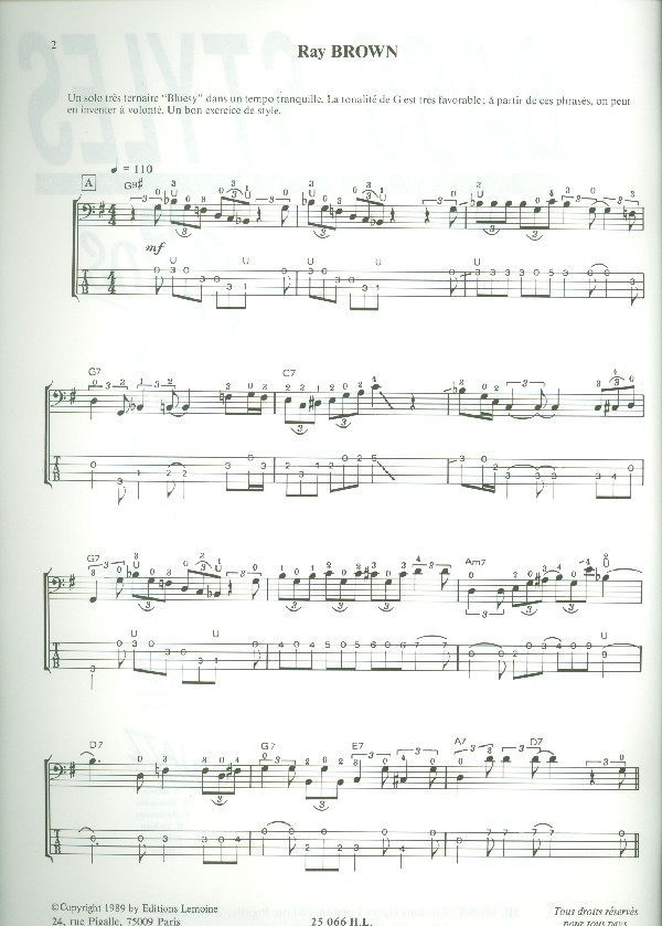 Dans les styles : Clarke, S. Johnson l., Kinh, M., Miller, M. (funk) Berlin, J., Caron, A., Haslip, J., Hellborg, J., Johnson, A., Lee, J., Pastorius, J., Tacuma, J. (fusion) Brown, R., Chambers, P, Darizcuren, F., La Faro, S., Gomez, E. (jazz)