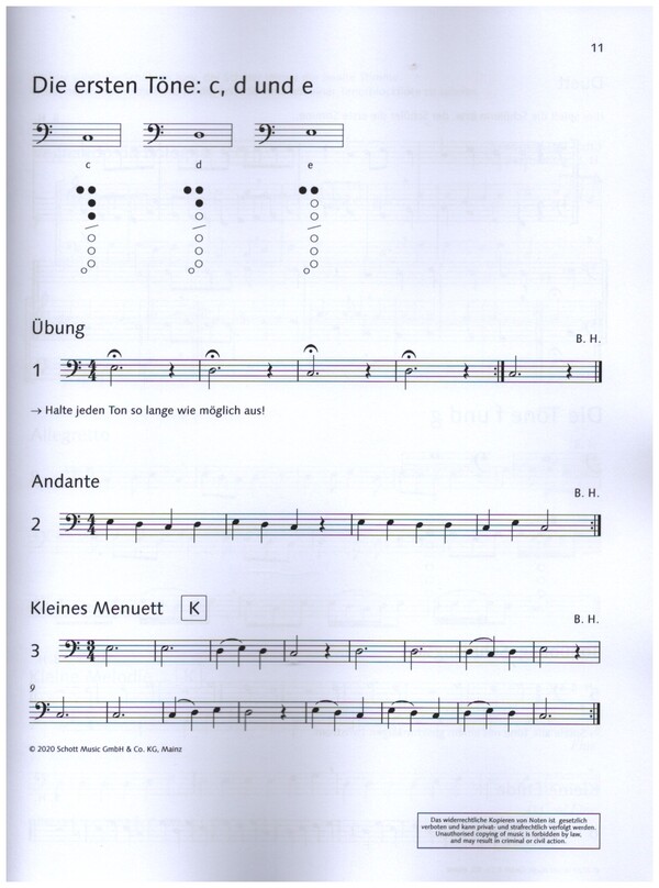 Die neue Schule für alle, die schon Blockflöte spielen können und die Bassblockflöte erkunden möchten. Anhand von zahlreichen Solostücken, Duetten und Werken mit Klavier- oder Cembalobegleitung führt die Schule in das Bassblockflötenspiel und den Bassschlüssel ein. Quartette sind zum Download erhältlich. Spieltipps und Wissenswertes sowie Etüden zur Förderung der Fingergeläufigkeit ergänzen den Lehrteil. Der Schwerpunkt liegt in der Musik des 16.-18.Jahrhunderts. In beiden Ausgaben wurde die Klavierstimme der tiefen Basslage angepasst. Zeichenerklärung Die ersten Töne: c, d und e Die Töne f und g Die Töne A und a Die Töne B und b Der Ton c' Die Töne H und h Die Töne G und F Der Ton fis Der Ton es/dis Der Ton cis/des Die Töne cis'/des' und d' Der Ton gis/as Die Töne e' und f' Der Ton es'/dis' Die Töne Fis/Ges und Gis/As Anhang Grifftabelle Verzeichnis der Quartette und Quintette