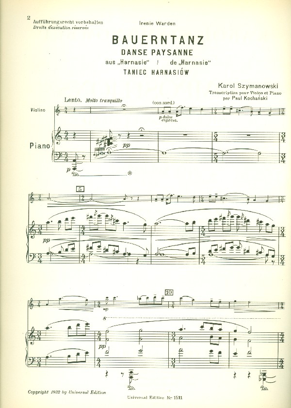 | Untertitel: | pour violon et piano Partitur und 1 Stimme |