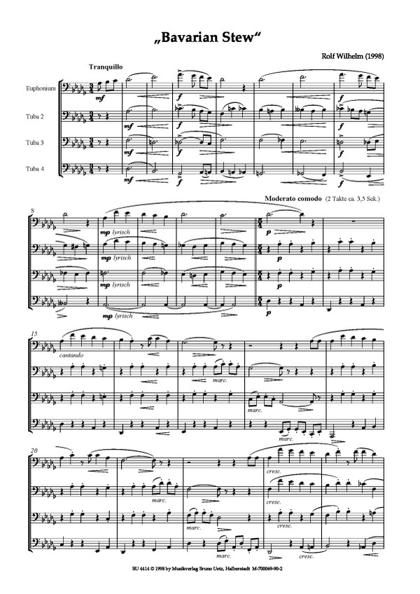 | Untertitel: | for 4 Tuben (oder Posaunen, Baritone, Tenorhörner) Partitur und Stimmen |