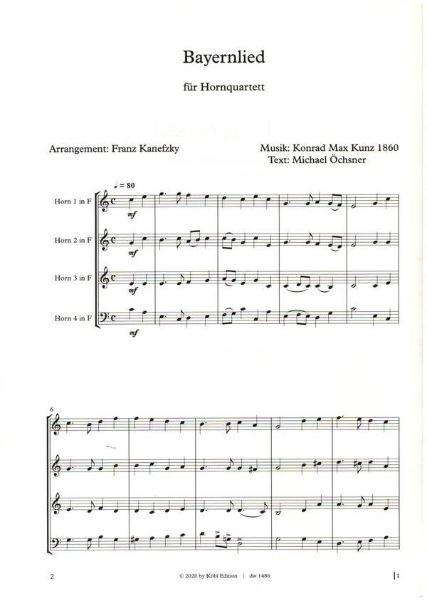 | Untertitel: | für 4 Hörner Partitur und Stimmen |