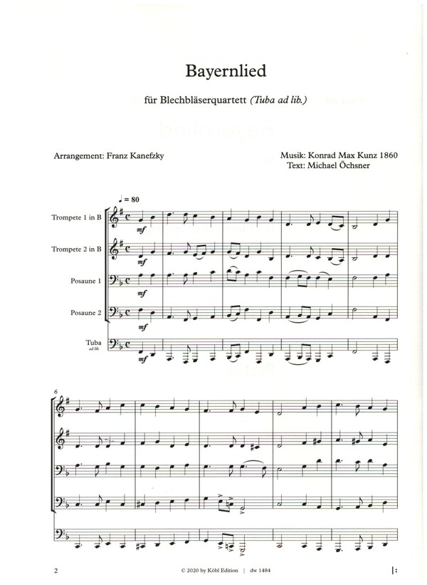 | Untertitel: | für 2 Trompeten, 2 Posaunen und Tuba ad lib Partitur und Stimmen |