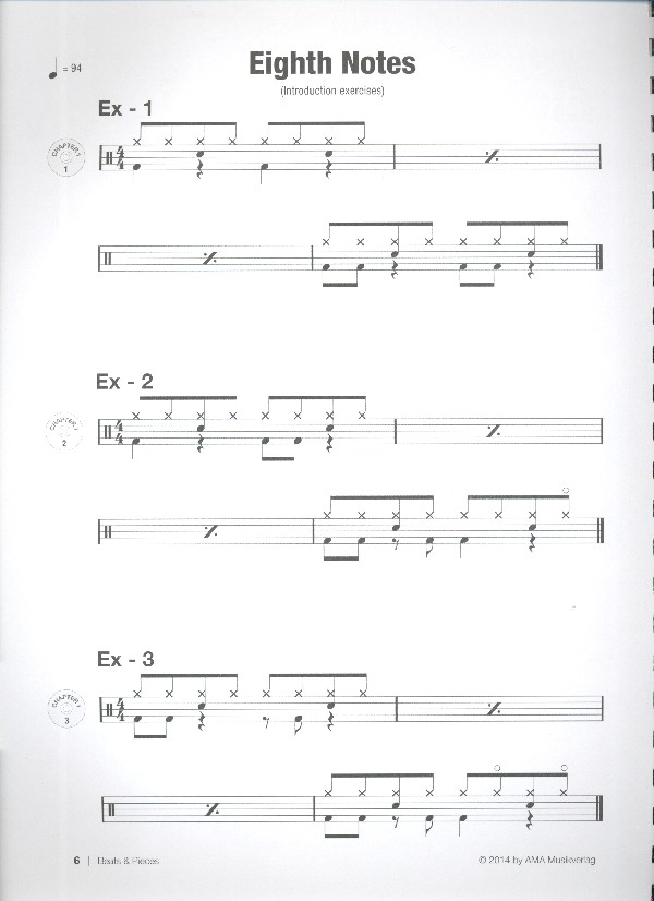 Dieses Buch ist als Erweiterung meines Buches The Working Drummer gedacht, in welchem wir eine umfangreiche Palette an Welt-Stilen, Techniken und Konzepten erarbeitet haben. Wir erfuhren auch einiges über die Geschichte der jeweiligen Stile und deren jeweiligen musikalischen Vertreter. Dieses Mal nehmen wir die einzelnen Elemente und setzen sie zu richtigen Stücken und Soli zusammen, die dem Schüler ermöglichen, sich eine komplette Performance zusammenzustellen. In der Regel gibt es vier Basiselemente zu einer Grund-Drum-Performance: 1. Spiele einen Groove, 2. spiele dazu die geöffnete HiHat, 3. spiele ein Fill, 4. spiele dazu das Crash-Becken. Ich weiß, dass ich mich sehr allgemein ausdrücke, aber das ist im Grunde der erste Schritt. Wenn ein Schüler einen Groove oder ein Fill gelernt hat, muss er auch wissen, wie er ihn musikalisch einsetzen kann. Als Lehrer kann ich anhand der vier Basiselemente ein viertaktiges Stück schreiben. Aber die Takte müssen fließen und der Schüler ans Spielen kommen! Der nächste Schritt besteht darin, das Ganze auszuschmücken. Es passiert oft, dass ich während des Unterrichtens einen Groove zeige und unbewusst beginne, ihn mit HiHat-Beats, Akzenten und Ghost Notes auf der Snare Drum auszugestalten, so dass die Schüler fragen, was ich dem Grundschema alles hinzufüge. Nun, so wie ein Koch das Essen würzt, unternehme ich das Gleiche, nur halt im rhythmischen Sinn: Ich mache den Groove interessanter. Dieses Buch ist konzipiert, dein Groove-Spiel zu verbessern, einen Sinn dafür zu entwickeln, jeden Groove dynamisch zu gestalten und dein Schlagzeug-Vokabular mit einer Reihe realisierbarer und klassischer Fills zu erweitern. Beats & Pieces ist als Erweiterung von John Trotters Buch The Working Drummer (AMA Nr. 610454) gedacht. Jetzt geht es nicht mehr um einzelne Elemente, sondern um kurze Stücke und Soli. Beats & Pieces ist das ideale Handbuch für alle Schwierigkeitsstufen und gibt dem Schüler Einblicke in Groove-Aufbau und Verzierungen. Mit Hilfe des Autors werden die Elemente, die der Schüler schon in Working Drummer kennengelernt hat, zu Stücken zusammengesetzt, so dass der Schüler sich am Ende des Buches eine eigene Performance zusammenstellen kann. Dazu gehören für John Trotter vier Basiselemente, die mit jedem zusätzlichen Instrument und dem richtigen Einsatz von Dynamik gestaltet und ausgeschmückt werden können. Auch in diesem Buch behandelt der Autor die Stile Rock, Funk, Latin, Afro-Cuban, New Orleans, Swing, Reggae, Disco und Soul. Zusätzlich gibt es auch eine Reihe Groove-Variationen, die mit Besen, Tom-Toms und Double Bass gespielt werden. Jedes Beispiel befindet sich auch auf der beiliegenden CD! Ein gelungenes Buch, dessen Soli sich für Wettbewerbe und Vorspiele eignen.