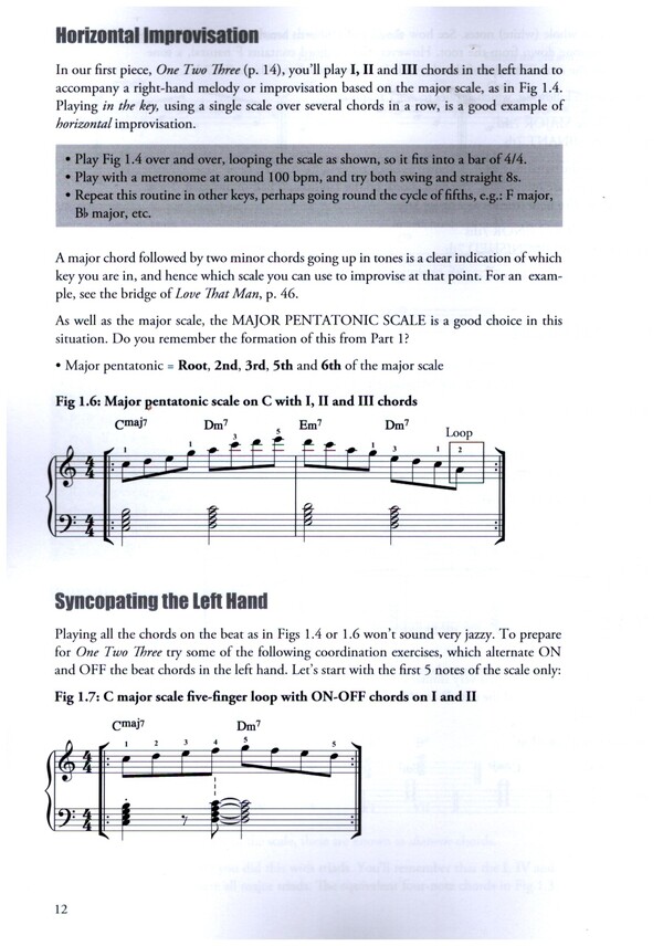 Schott Pop-Styles An introduction to swing, blues, latin and funk Part 2: Harmony, Improvisation, Accompanying & Reading from Lead Sheets Beginning Jazz Piano richtet sich an Spielerinnen und Spieler mit geringen Vorkenntnissen, die Spaß am Erkunden jazzverwandter Musik haben. Mit vielen gut klingenden Spielstücken - eigenen Kompositionen, Traditionals und neuen Melodien zu bekannten Jazz-Songs - führt Tim Richards an den Blues, Funk und die lateinamerikanische Musik heran und erklärt die wichtigsten Techniken für die rechte und linke Hand. Der erfahrene Pädagoge und Autor der von der Kritik gefeierten Lehrwerke Blues Piano und Jazz Piano orientiert sich dabei u.a. auch an den Anforderungen des ABRSM-Prüfungskatalogs, was das Lehrwerk zu einer unverzichtbaren Übe- und Lernressource macht. Band 1 (ED 23374) erklärt auf einfache Weise, wie man spontan und frei über Harmonien spielen kann. Beginnend mit Dreiklängen in der linken Hand werden hier zunächst Fünftonleitern und Arpeggios sowie die Bluestonleiter erklärt und an konkreten Stücken ausprobiert. Gespickt mit typischen Rhythmen und Bassgrooves von Swing bis Latin macht Band 2 (ED 23379) dann Lust auf das Klavier als Begleitinstrument und zeigt darüber hinaus, wie man eine Melodie im Jazzkontext arrangieren kann. Die beiden Bände sind im gleichen Schwierigkeitsgrad gehalten und können sowohl nacheinander als auch parallel zueinander genutzt werden. Die Audio-Dateien umfassen Vollversionen und Play-Along-Tracks, mit Tim Richards am Klavier, einer zusätzlichen Basslinie und Schlagzeug. Besonders empfehlenswert nicht nur für Autodidakten ist das interaktive Feature 'Replay': In Kooperation mit 'MusicGurus', einem Anbieter hochwertiger Online-Lessons, können kostenlose, interaktive Noten zu allen Spielstücken online abgerufen werden, die das Üben erleichtern und einen schnellen Lernerfolg garantieren.