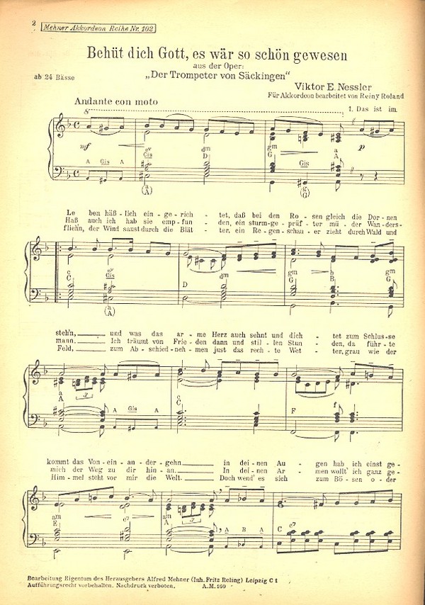 Mehner Akkordeon-Reihe 102 Roland, Reiny, arr. aus der Oper Der Trompeter von Säckingen